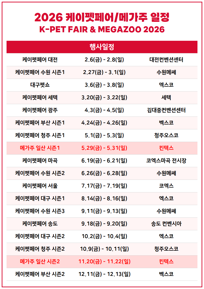 2026년도 "케이펫페어 · 메가주" 개최 일정안내