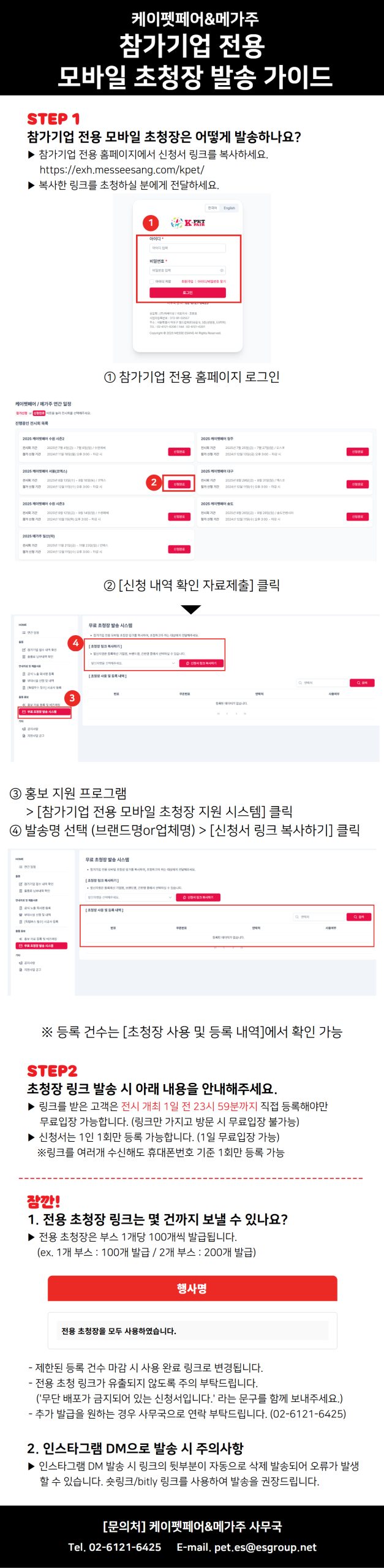 [케이펫페어/메가주] 2026 전시 홍보 지원 프로그램 매뉴얼 / 온라인 서류 가이드 / 쭈쭈쭈 가이드 / 모바일 초청장 안내