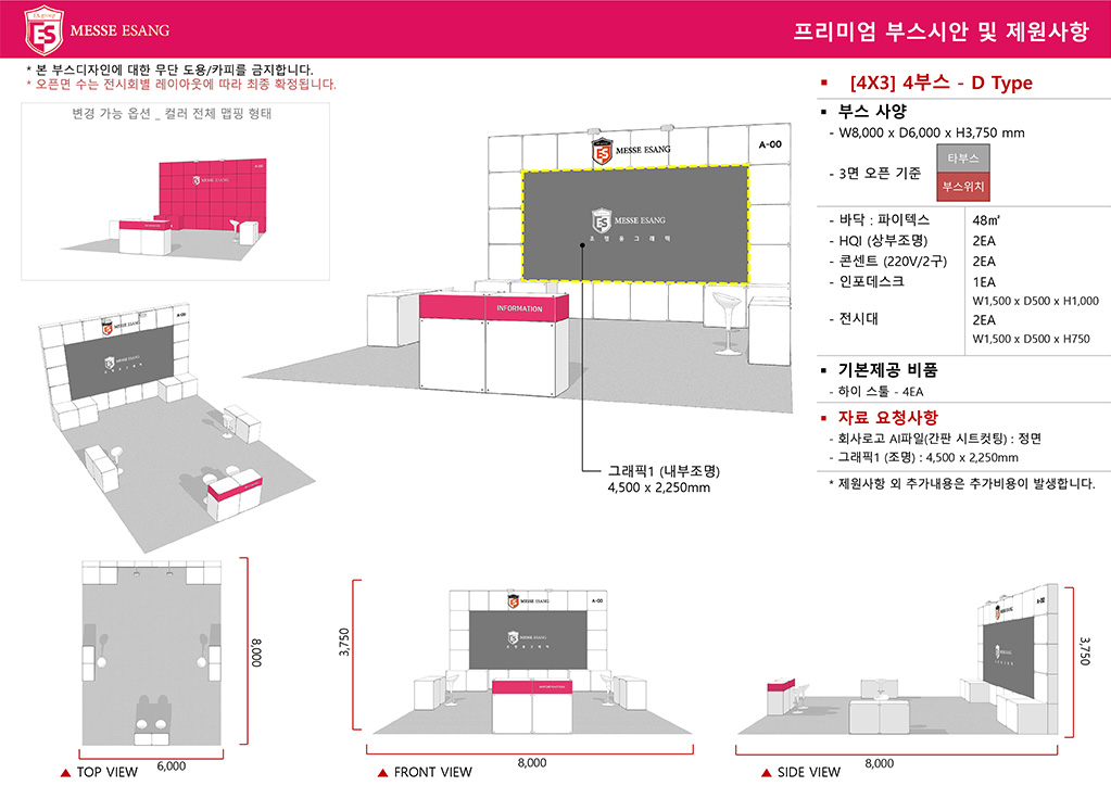 ※ 아래 내용에서 정해진 부스 수 외 다른 부스 수를 선택할 경우 아래 연락처로 문의하시어 견적을 받은 후 진행해 주시기 바랍니다.
