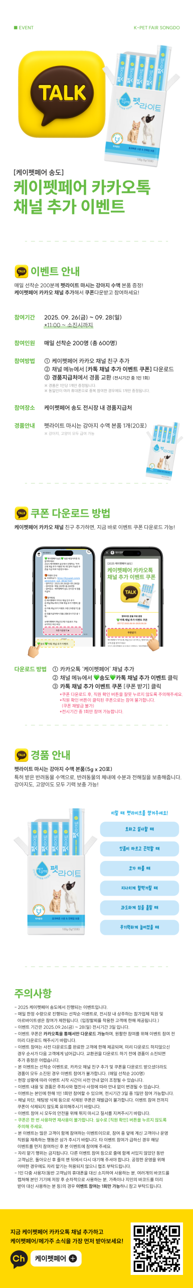 [2025 케이펫페어 송도] 매일 선착순 200명 펫라이트 마시는 수액 증정! 카카오톡 채널 추가 이벤트