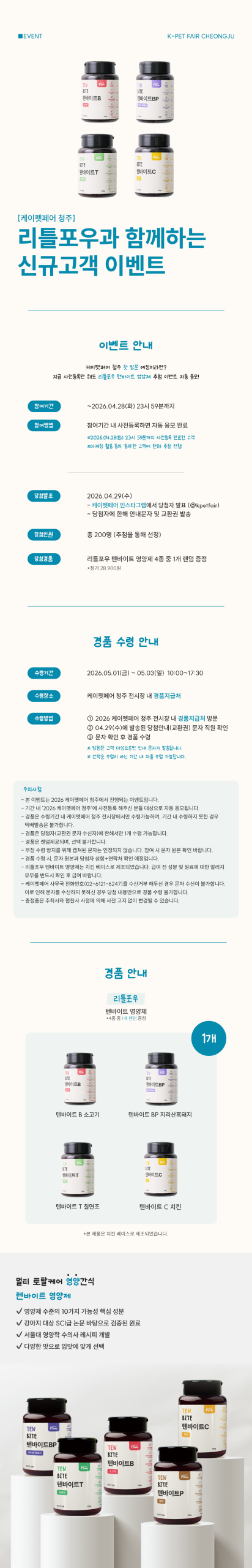 [2026 케이펫페어 청주 시즌1] 첫 방문이라면 자동 응모! 🗳️ 리틀포우와 함께하는 신규고객 이벤트