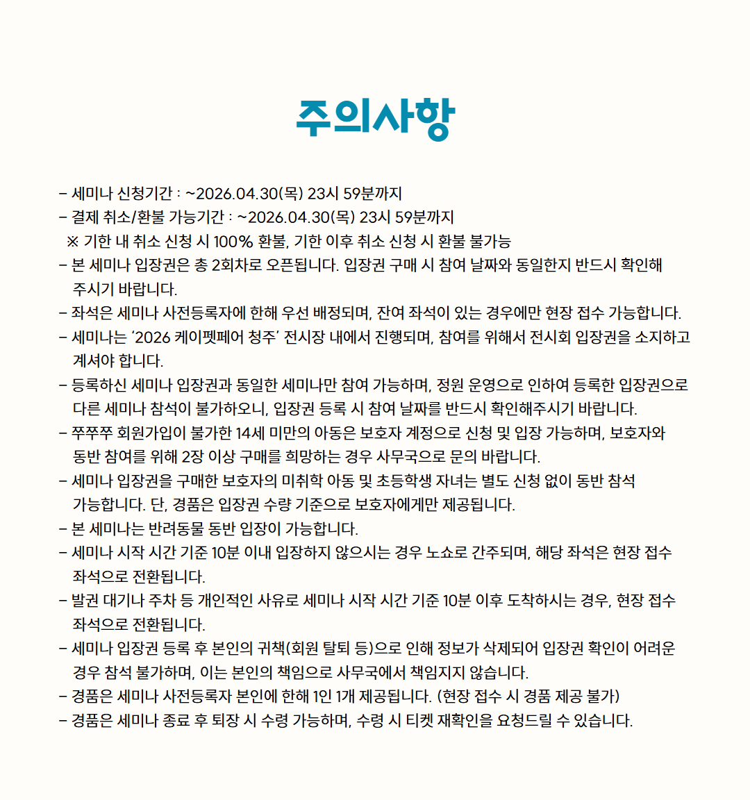 [2026 케이펫페어 청주 시즌1] 목우촌과 함께하는 산책 필살기 세미나 🚶🐕