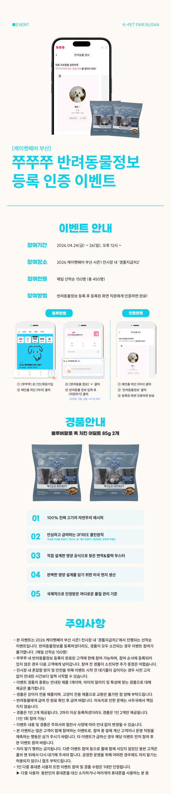 [2026 케이펫페어 부산 시즌1] 쭈쭈쭈에서 반려동물정보 등록하면 블루버팔로 사료 샘플 증정!📲
